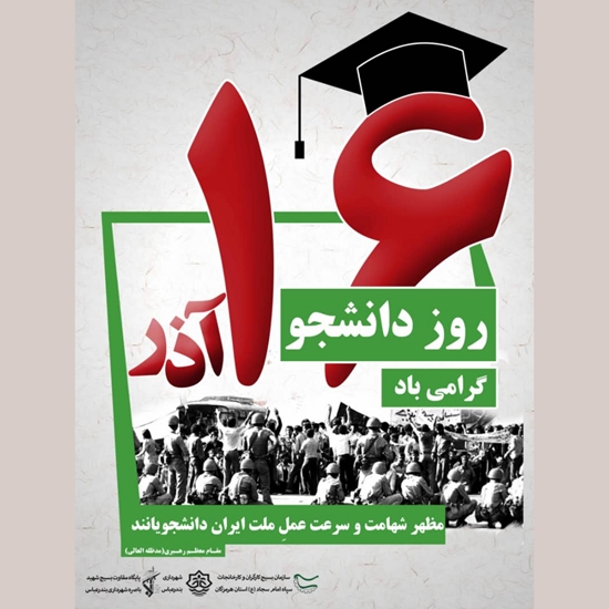 دانشجويان و جويندگان علم و ادب و معرفت فاتحان قله های شناخت و آگاهی در هر سرزمينی هستند، افتخار دانشجو بودن در يک برهه از زندگی قطعا نصيب بسياری از افراد می شود و بدون تردید نقطه عطفی در زندگی هر انسان آزاده ايست كه آميزه ی آموختن را سر لوحه ی بخشی از زندگی خويش قرار داده است ،١٦آذر برگ زرينی در تاریخ دانشجویی ایران محسوب می شود روزی كه صلابت و شهامت و شجاعت رنگين ترشد و زمين جامه ای سرخ بر تن نمود و خون در سنگر علم و دانش در جغرافيای ايران اسلامی جوهری شد برای نگارش و تأليف كتابهای مكتب عشق و شهادت جايگاه دانشگاه های امروز به بركت از خود گذشتگی نسل ديروز فقط در تعريفی علمی و آكادميک خلاصه نمی شوند بلكه محلی برای آموختن علم و دانش و تربيت روح و روان و تعيين نقش انقلاب و جهاد برای تقويت عدالت و آزادی خواهی شد.