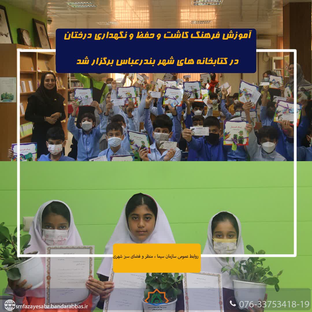 آموزش فرهنگ کاشت و حفظ نگهداری درختان و فضای سبز با همکاری کتابخانه های شهر بندرعباس