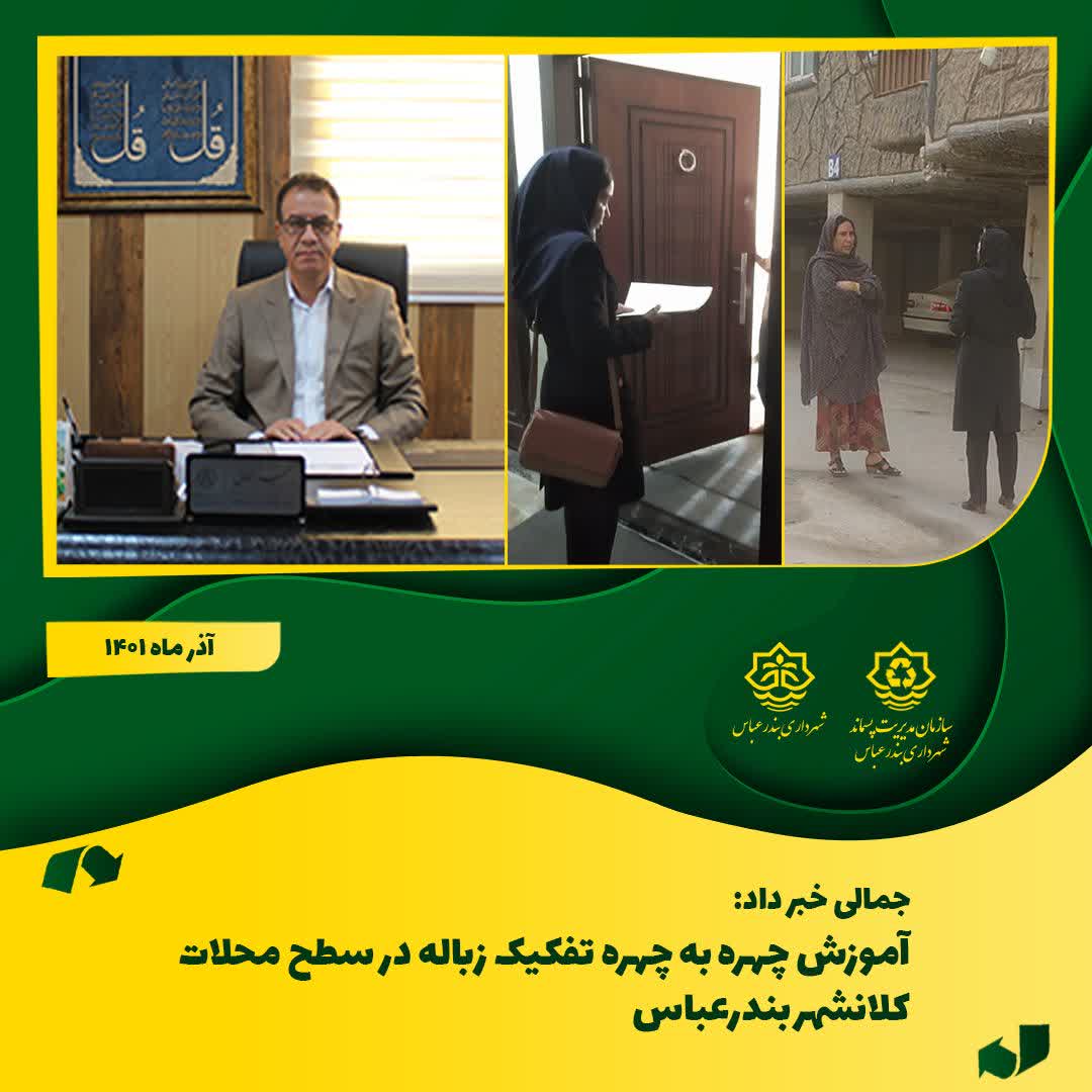 آموزش چهره به چهره تفکیک زباله در سطح محلات کلانشهر بندرعباس