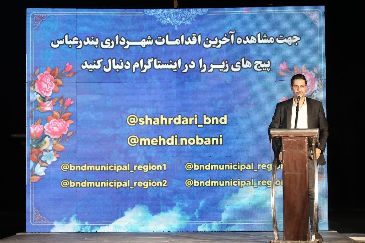 شهردار بندرعباس با تببین جایگاه سلامت شهروندان خاطر نشان کرد :از عید قربان تا غدیر ۹ پروژه برای بهره برداری و کلنگ زنی اماده شده که کلنگ زنی کشتارگاه نیمه صنعتی دام،بهره برداری از پیست دوچرخه سواری ،بهره برداری ازبازگشایی معبر در آزادگان ،بهره برداری از پل شهید سالاری ،بهره برداری از فاز یک تقاطع غیر همسطح شهید زارعی ،کلنگ زنی مسیر پیاده روی استاندار در پارک جنگلی ،بهره برداری از بازگشایی و معبربزرگ در محله اسلام آباد و آئین کلنگ زنی زیبا سازی محلات بافت فرسوده به عنوان پروژه های عیدانه شهرداری بندرعباس معرفی شده اند همچنین جشن عکس پروژه های تکمیل شده در سالهای گذشته نیز در این ایام با معرفی ۱۶ پروژه در حال برگزاری می باشد.
