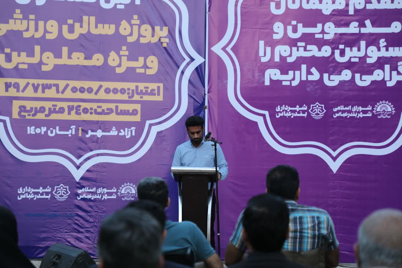 به گزارش مدیریت ارتباطات و امور بین الملل شهرداری بندرعباس در این آیین که با حضور شهردار بندرعباس رییس و اعضای محترم شورای اسلامی شهر و جمعی از مدیران شهرداری و شهر بندرعباس برگزار شد شهردار و رییس شورای اسلامی شهر بندرعباس در سخنانی بر افزایش و اهمیت خدمات دهی و مناسب سازی اماکن ورزشی و عمومی و معابر برای معلولین تاکید نمودند.