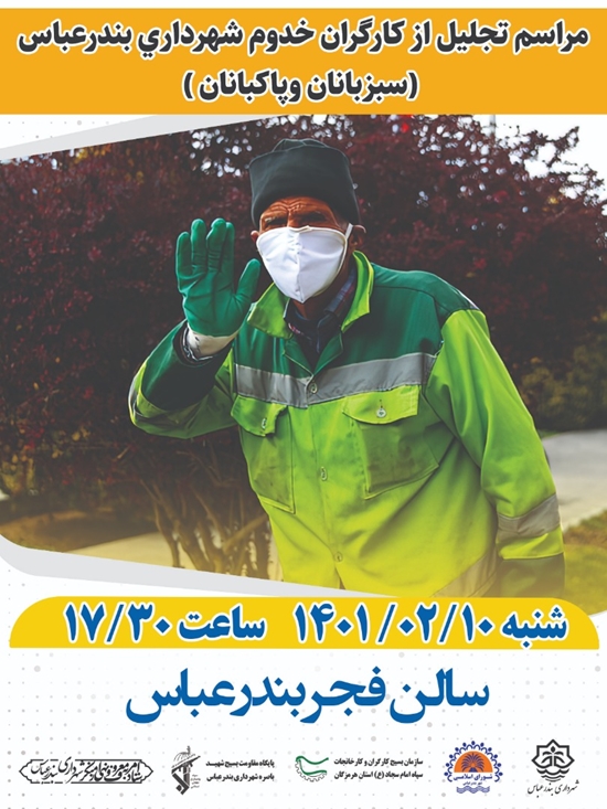 نوبانی با اشاره به اینکه کارگران به عنوان پیشانی فعالیت های شهرداری می باشند، گفت: در روز شنبه دهم اردیبهشت ماه مراسم تجلیل ۲۴۰۰ نفر ازنیروهای تنظیف و فضای سبز با حضور مسولین استانی و اعضای شورای شهر در سالن فجر بندرعباس برگزار می شود.
