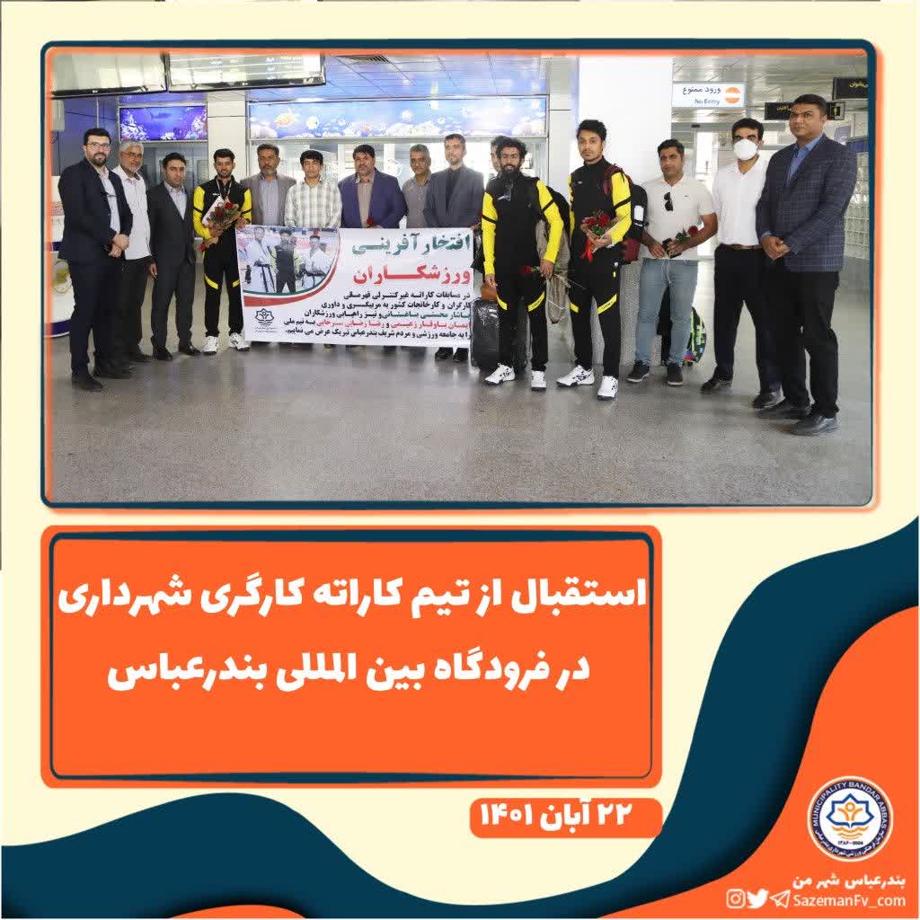 استقبال از تیم کاراته کارگری شهرداری در فرودگاه بین المللی بندرعباس
