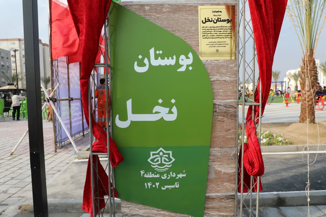 به گزارش مدیریت ارتباطات و امور بین الملل شهرداری بندرعباس و به نقل از روابط عمومی منطقه چهار شهرداری بندرعباس، آیین افتتاح بوستان نخل با حضور وزیر کشور، استاندار هرمزگان ، فرماندار بندرعباس ، اعضای محترم شورای شهر  و شهردار بندرعباس و مدیر و مسئولان منطقه ۴ شهرداری افتتاح گردید.