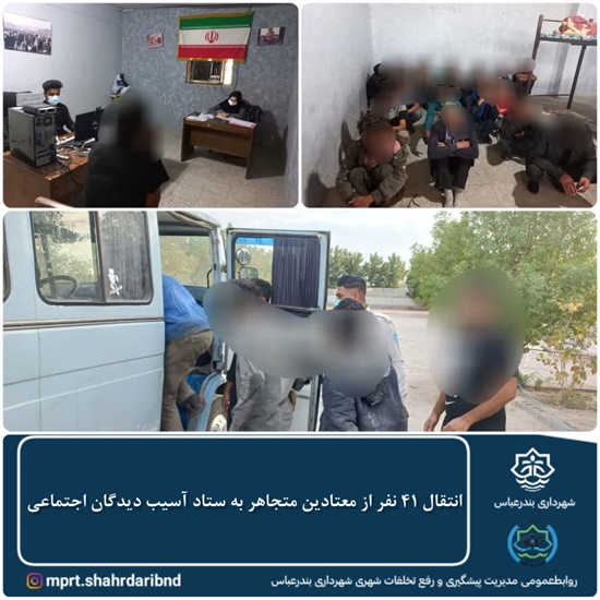 به گزارش مدیریت ارتباطات و امور بین الملل شهرداری بندرعباس به نقل از روابط عمومی مدیریت پیشگیری و رفع تخلفات شهری: تعداد ۴۱ نفر معتاد متجاهر، که توسط ستاد آسیب دیدگان اجتماعی شهرداری بندرعباس جمع آوری شده بودند غربالگری و پس از معاینه پزشکی و تحت نظارت مدیریت پیشگیری و رفع تخلفات شهری جهت درمان  به مراکز درمانی ترک اعتیاد معرفی و  پس از بهبودی کامل بصورت دوره ای با دستور قضایی ترخیص می شوند.