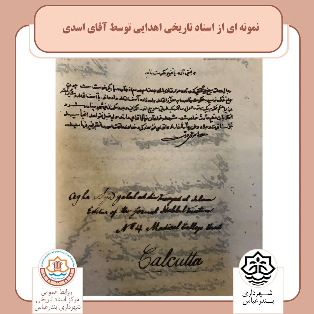 اهدا ۵۰۰ برگ سند تاریخی مربوط به محمد حسین کازرونی( نماینده تجارتخانه جمشیدیان) به مرکز اسناد تاریخی شهرداری بندرعباس