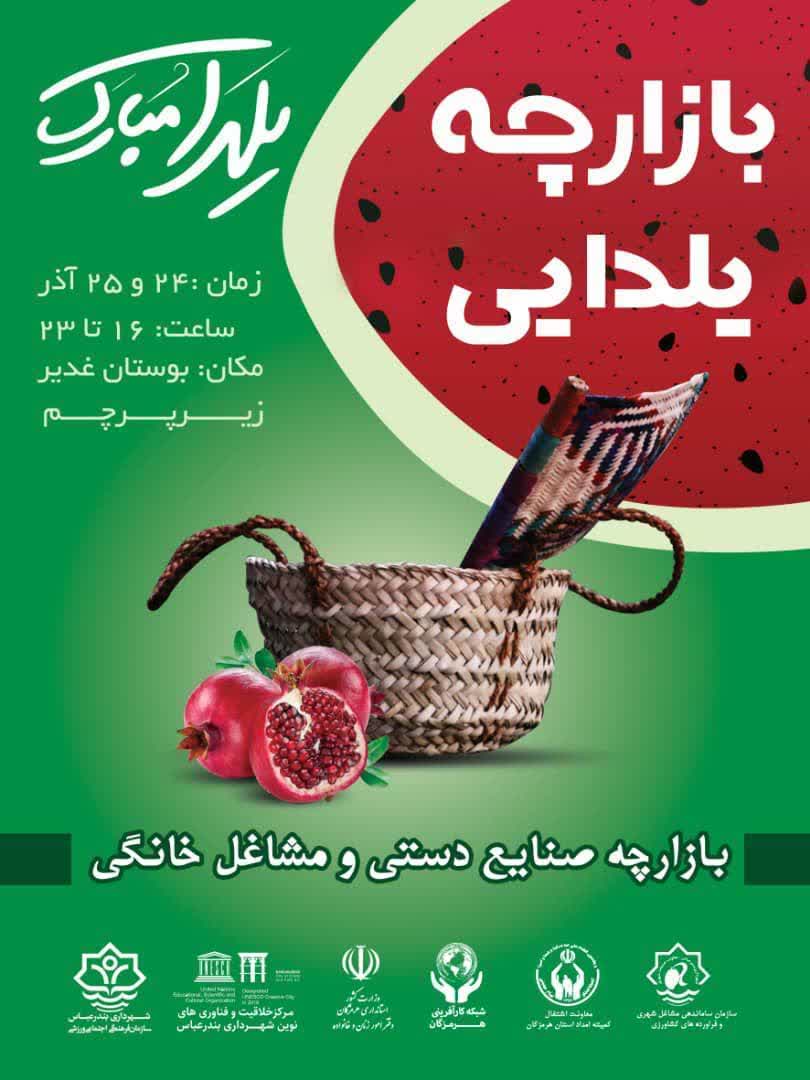 به گزارش مدیریت ارتباطات و امور بین الملل شهرداری بندرعباس به نقل از روابط عمومی سازمان فرهنگی اجتماعی ورزشی شهرداری بندرعباس ، بازارچه صنایع دستی و مشاغل خانگی به مناسبت شب یلدا در ساحل خلیج فارس برگزار می شود.