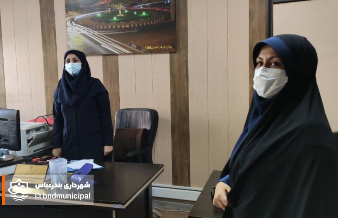 بازدید فریده عامری، عضو شورای شهر بندرعباس و فاطمه حاجی نژاد دبیر کمیته امر به معروف و نهی از منکر شهرداری بندرعباس از واحدهای شهرداری مرکزی