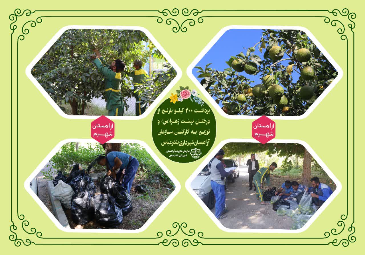 رئیس سازمان مدیریت آرامستان شهرداری بندرعباس از برداشت محصول نارنج از درختان بهشت زهرا(س) خبر داد.