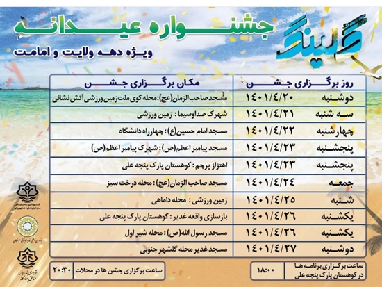 به گزارش مدیریت ارتباطات و امور بين الملل شهرداری بندرعباس به نقل از روابط عمومی معاونت معماری و شهرسازی شهرداری بندرعباس، اصغر حسینی پور بیان کرد: همزمان با دهه ولایت و امامت در راستای شناخت بیشتر کودکان و نوجوانان با مسأله غدیر خم جشنواره عیدانه با نام گلپنک به همت سازمان فرهنگی اجتماعی ورزشی شهرداری بندرعباس و شهر دوستدار کودک و همکاری مناطق چهارگانه شهرداری بندرعباس و بنیاد غدیر استان هرمزگان به مدت ۱۰ شب در محلات مختلف شهر بندرعباس برگزار شد.