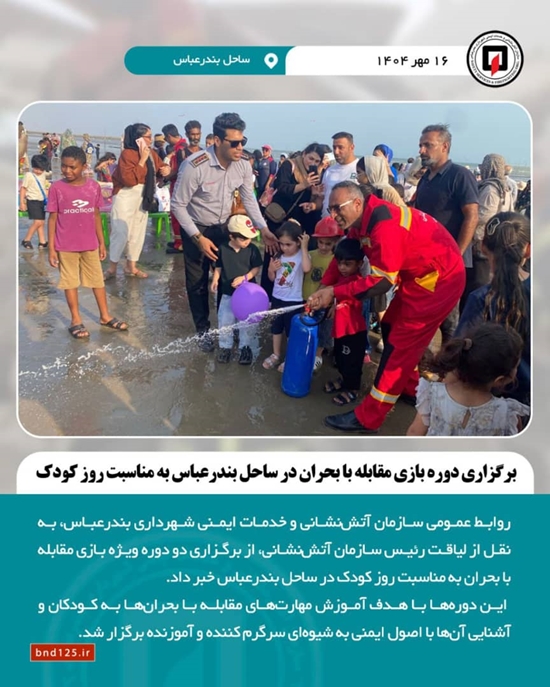 به گزارش مدیریت ارتباطات و امور بین الملل شهرداری بندرعباس به نقل از روابط عمومی سازمان آتش‌نشانی و خدمات ایمنی شهرداری بندرعباس، لیاقت رئیس سازمان آتش‌نشانی، از برگزاری دو دوره ویژه بازی مقابله با بحران به مناسبت روز کودک در ساحل بندرعباس خبر داد.