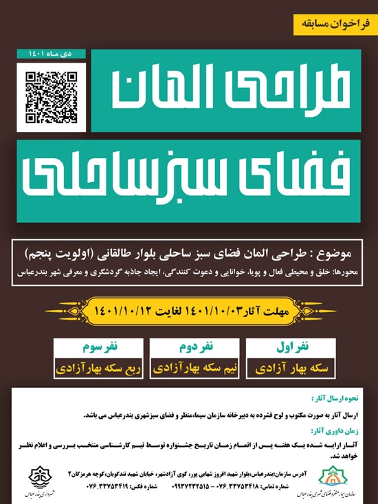 برگزاری فراخوان طراحی المان فضای سبز ساحلی بلوار طالقانی