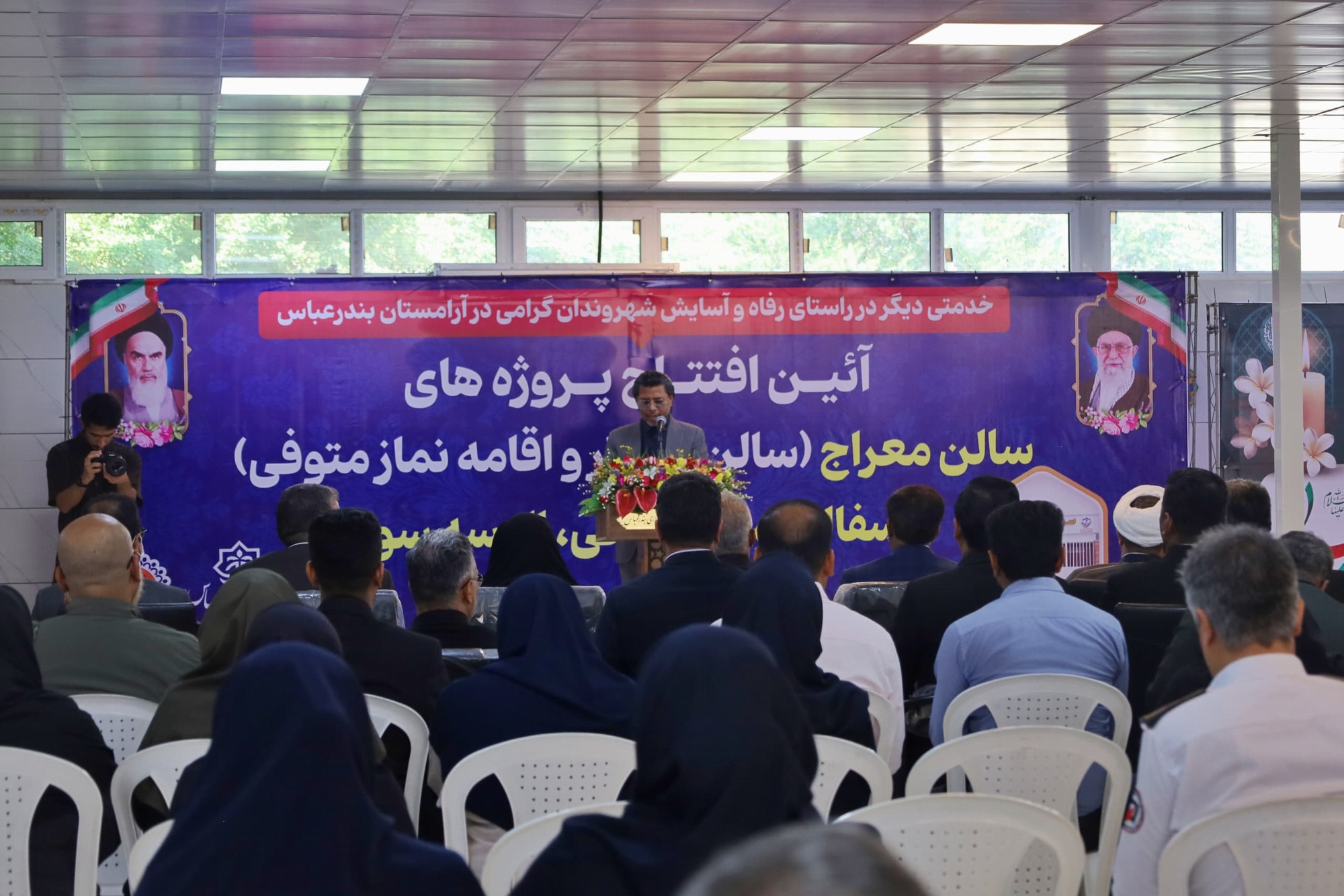 آیین بهره‌برداری از سالن انتظار و اقامه نماز معراج ویژه همراهان متوفی، پروژه آسفالت خیابان‌های خاکی و دستگاه البسه‌سوز آرامستان بندرعباس، صبح امروز (یازدهم آبان‌ماه ۱۴۰۴) با حضور شهردار بندرعباس، فرماندار، رئیس و اعضای شورای اسلامی شهر، مدیرکل بنیاد حفظ آثار و ارزش‌های دفاع مقدس، معاونان شهرداری و مدیران سازمان‌های تابعه برگزار شد.