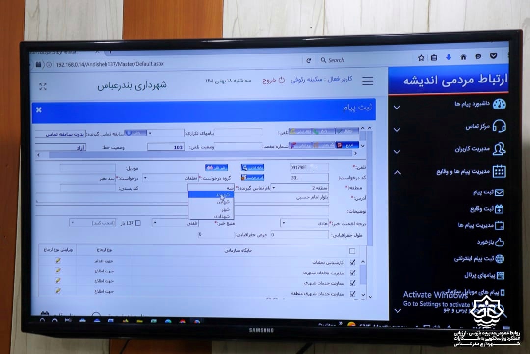 بمناسبت دهه مبارک فجر سامانه ارتباط مردمی ١٣٧ شهرداری بندرعباس به بهره برداری رسید.