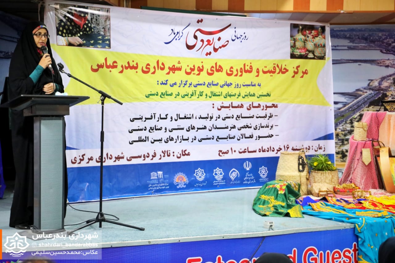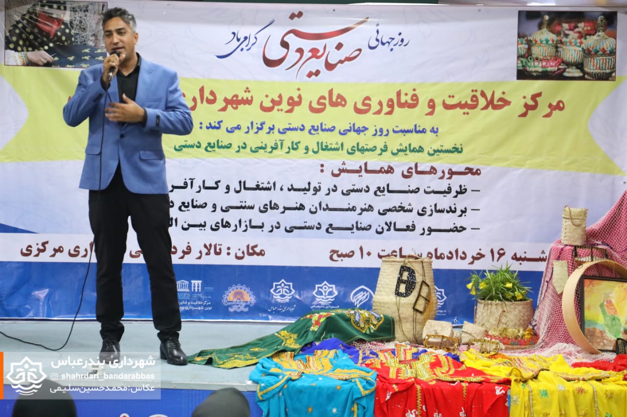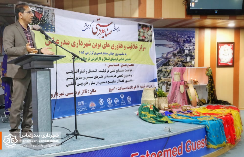 بيفتد و هنرمندان صنايع دستى در حوزه توليد و فروش محصولات روند رو به رشدى داشته باشند، برند سازى محصولات و ثبت صنايع دستى برای شناساندن محصولات بسيار حايز اهميت است هويت بومى و فرهنگ ما بايد حفظ شود وظايف مركز خلاقيت حمايت همه جانبه از همه بخشها و مراحل صنايع دستى است نام پايتخت اقتصادی در همه ابعاد بايد به خوبی برای بندرعباس تعريف و تثبيت شود،در فضاى مجازی از بحث صنايع دستی بايد به خوبی حمايت نماييم و بسترى برای اين موضوع اگر فراهم باشد هنرمندان ميتوانند با آرامش خاطر بيشتری محصول توليد كنند ،توليد شغل شايد وظيفه ذاتی شهرداری نباشد اما اشتغال در حوزه صنايع دستى دغدغه ماست و كمك به اشتغال مردم در حوزه صنايع دستى در راستای اسم شهر خلاق كار بسيار مهمی است،مجموعه شهرداری با تمام وجود برای حمايت از صنايع دستى حاضر است با كمك هم بايد فرهنگ بومي محلی استان را ترويج كنيم.