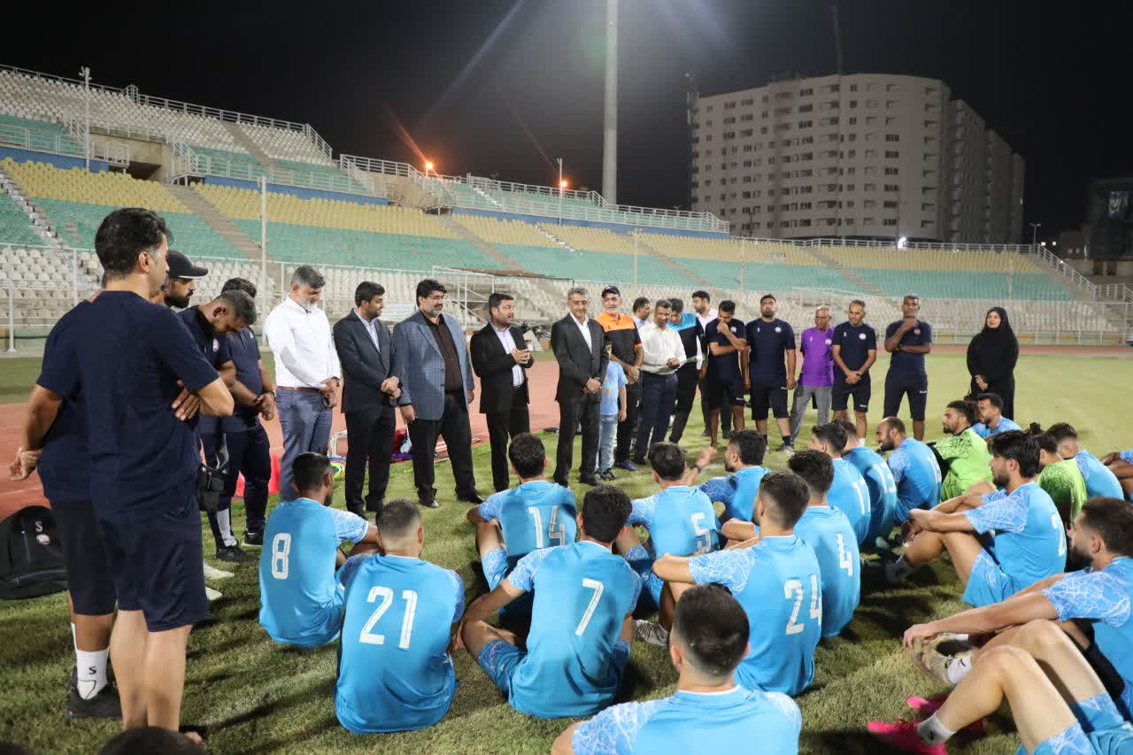 این تقدیر در تمرینات دو تیم با حضور مصیب نظری رئیس شورای اسلامی شهر بندرعباس، مهدی نوبانی شهردار بندرعباس، رسول جهانداری مدیر عامل باشگاه و اعضای هئیت مدیره باشگاه صورت گرفت.