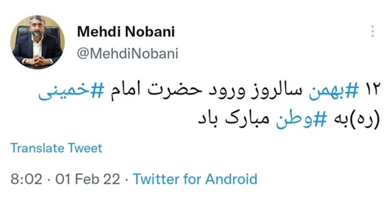 توييت مهدی نوبانی شهردار بندرعباس به مناسبت سالروز ورود حضرت امام خمینی (ره)