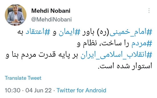 به گزارش مديريت ارتباطات و امور بين الملل شهرداری بندرعباس مهدی نوبانی شهردار بندرعباس توييتی به مناسبت ١٤ خرداد سالروز رحلت امام خمينی (ره)منتشر كرد