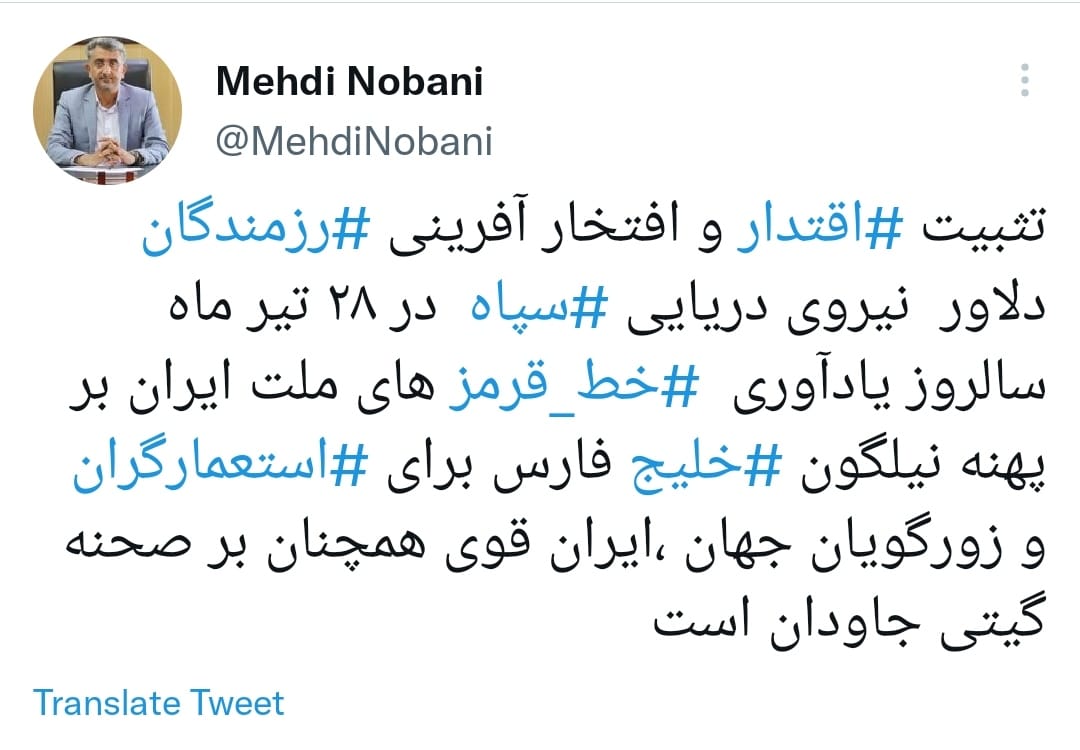 توییت شهردار بندرعباس به مناسبت ٢٨ تیرماه سالروز توقیف نفتکش انگلیسی توسط نيروی دريايی سپاه