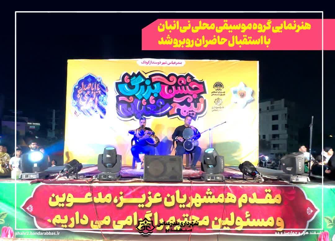 گفتنی است در جشن باشکوه نیمه شعبان هنرمندان مطرح کشوری و استانی با حضورشان شادی را به مردم هدیه و خنده را بر لبانشان آوردند.