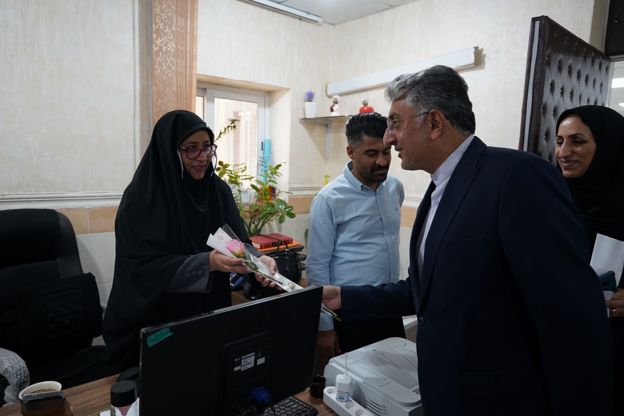 در پایان این مراسم، با اهدا شاخه گل از تلاش‌های کادر بهداشت و درمان تقدیر شد.
