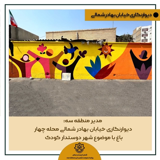 مدیر منطقه سه افزود: شهرداری بندرعباس از تمام ظرفیت خود برای احقاق حقوق کودکان استفاده می کند در همین راستا نقاشی دیواری با موضوع شهر دوستدار کودک در محله چهارباغ در بلوار بهادر شمالی اجرا شده است .
