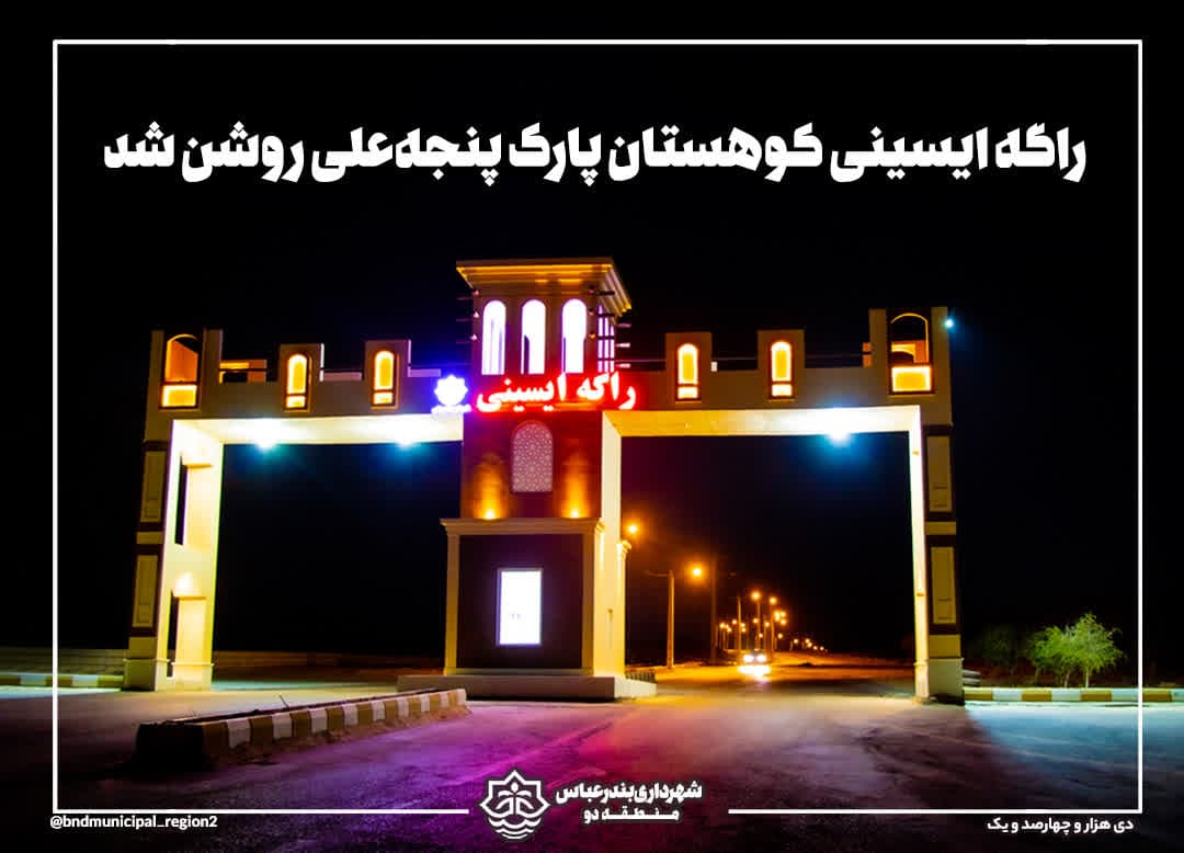 به گزارش مدیریت ارتباطات و امور بین الملل شهرداری بندرعباس به نقل از روابط عمومی منطقه دو شهرداری بندرعباس ورودی کوهستان پارک پنجه‌علی با نام راگَه ایسینی به همت نیروهای حوزه خدمات شهری با هدف افزایش زیبایی بصری روشن شد.