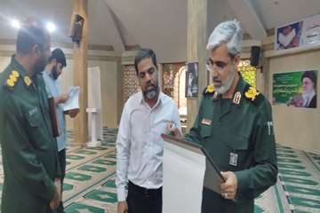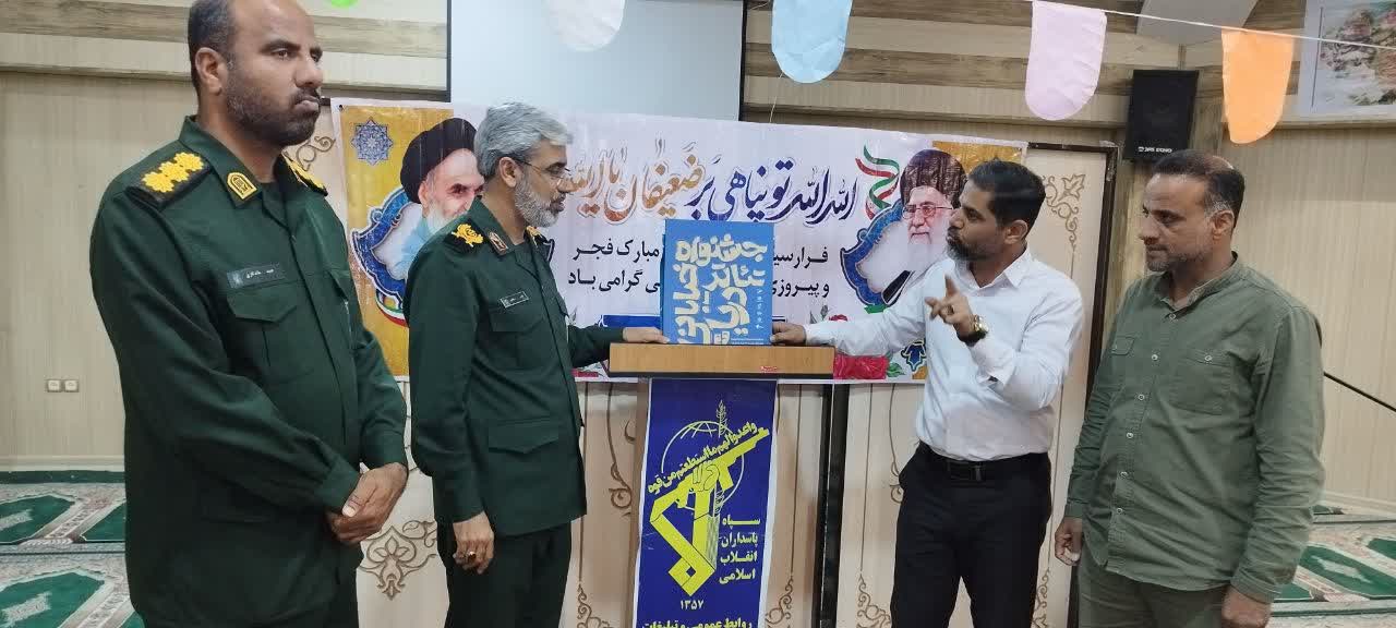 پوستر جشنواره تئاتر خیابانی دریا به دست سردار اباذری سالاری فرمانده سپاه امام سجاد(ع) هرمزگان رونمایی شد.