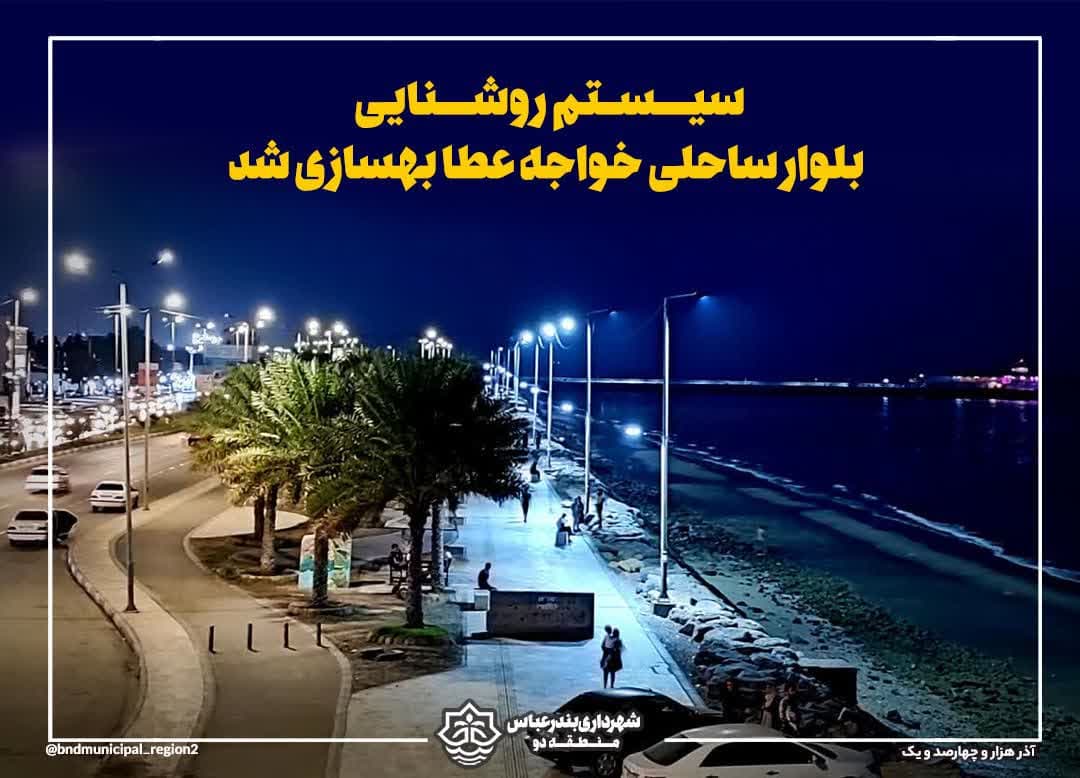 سیستم روشنایی بلوار ساحلی خواجه عطا بهسازی شد