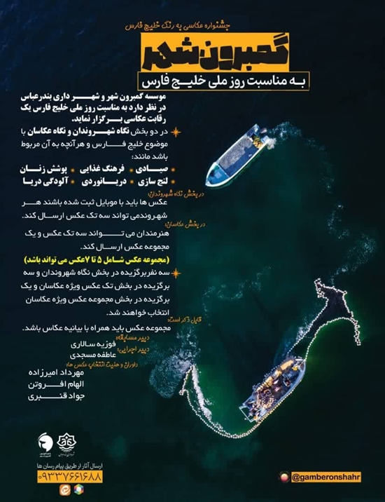 به مناسبت ۱۰ اردیبهشت روز ملی خلیچ فارس شهرداری بندرعباس مسابقه عکاسی با عنوان گمبرون شهر برگزار می نماید.