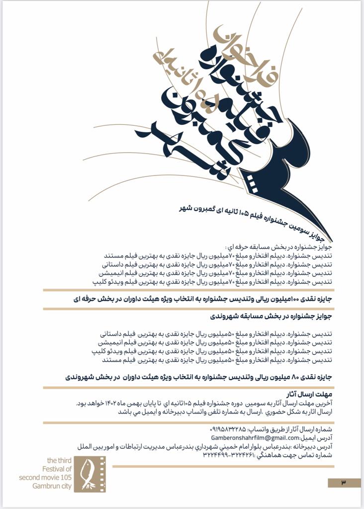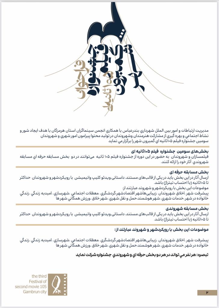 فراخوان سومین جشنواره فیلم ١٠٥ ثانیه ای گمبرون شهر
