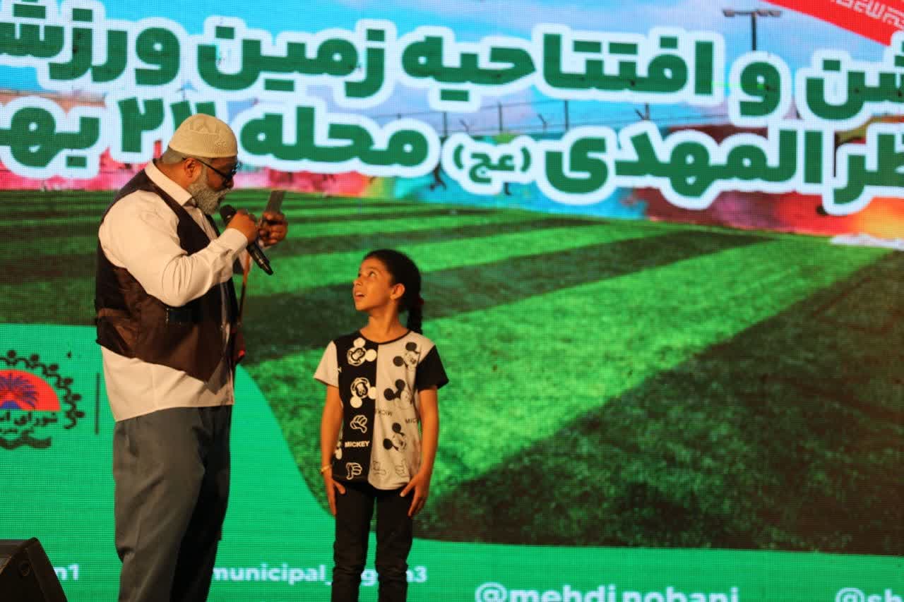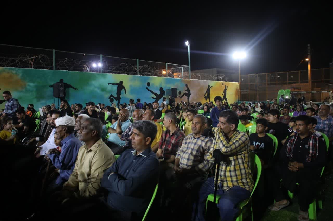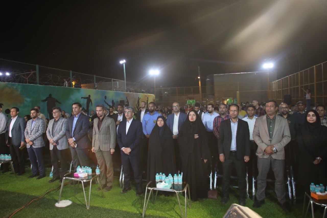 مراسم جشن و بهره برداری از زمین ورزشی دو منظوره منتظر المهدی در محله 22 بهمن بندرعباس
