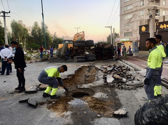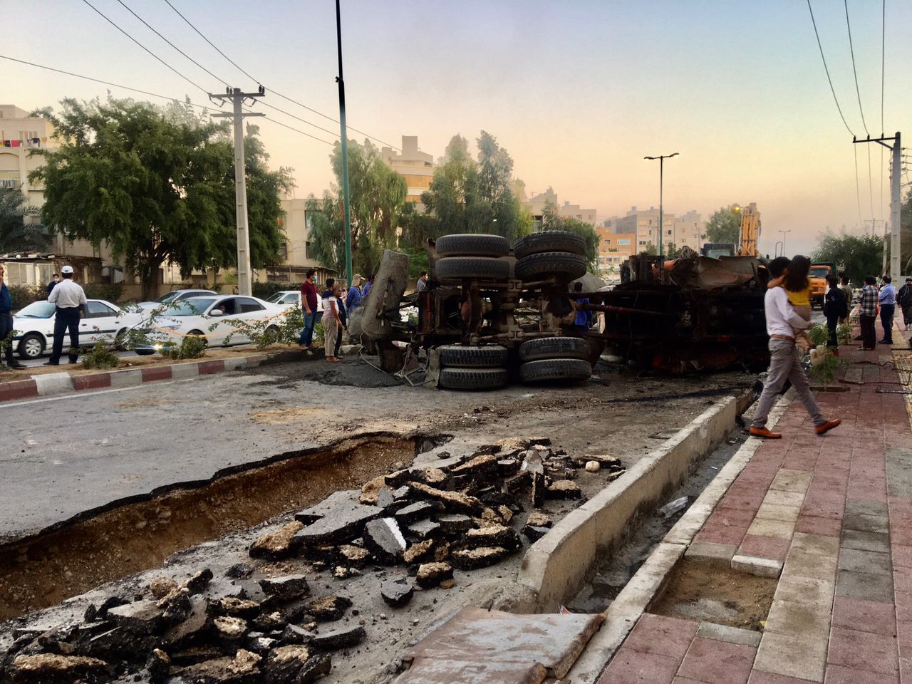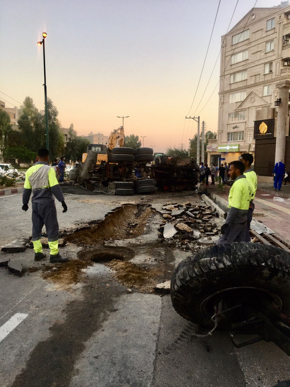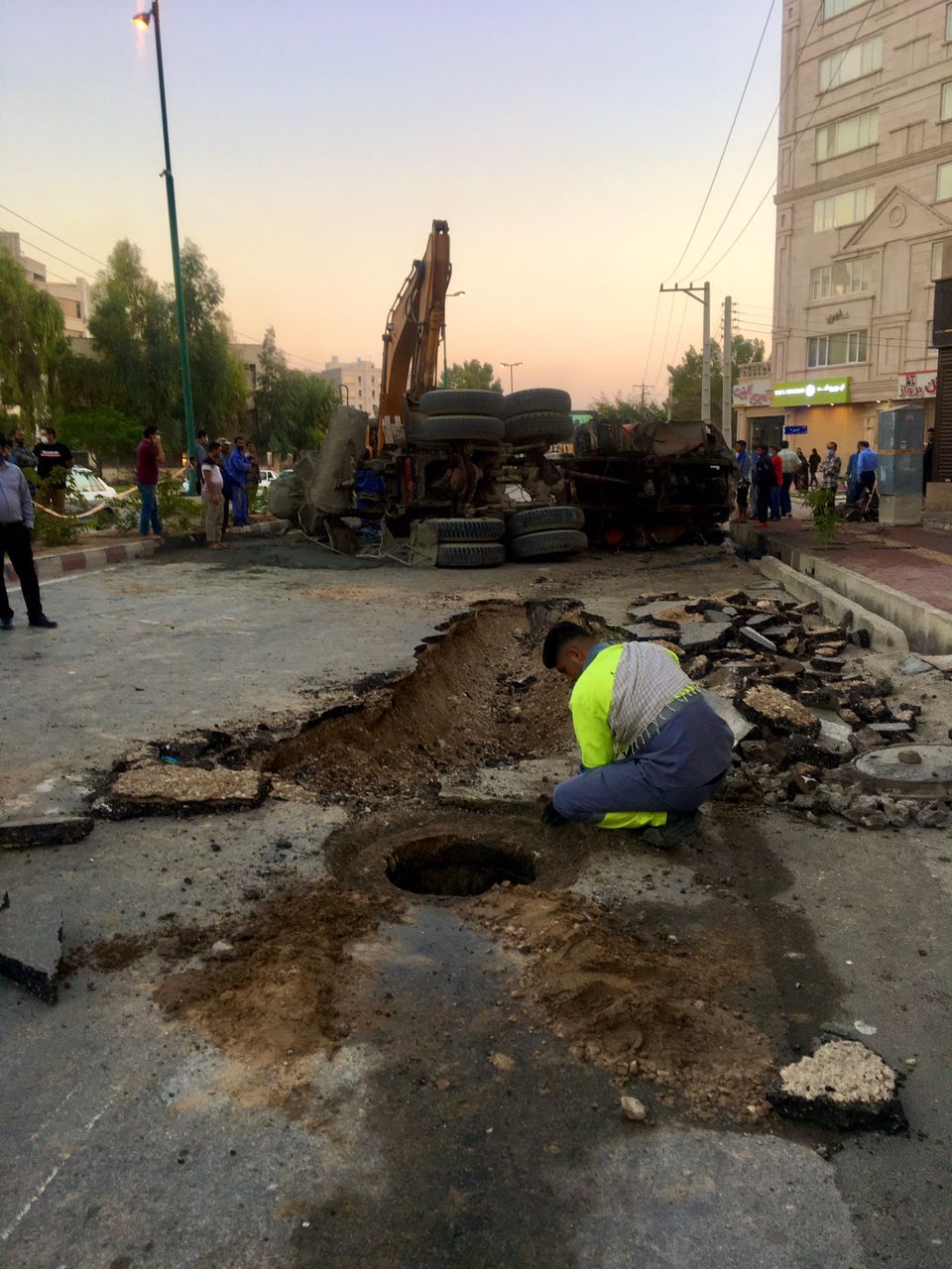 نشست خط لوله فاضلاب باعث سقوط تانکر سیمان شد/ مسدود شدن خیابان در حد فاصل چهارراه پردیس تا میدان صادقیه