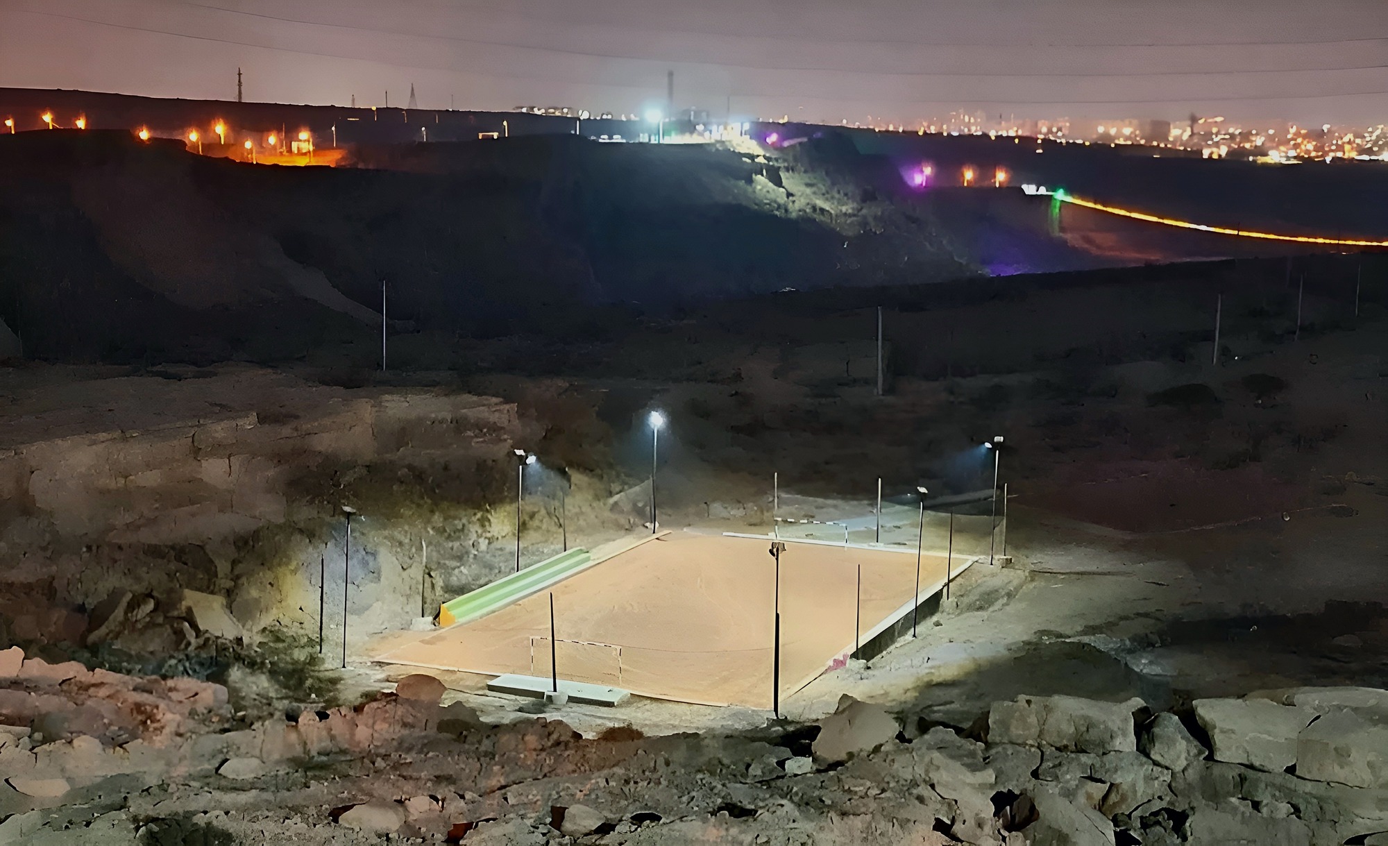 نصب پایه‌های نوری در زمین فوتبال ساحلی پنجه‌علی