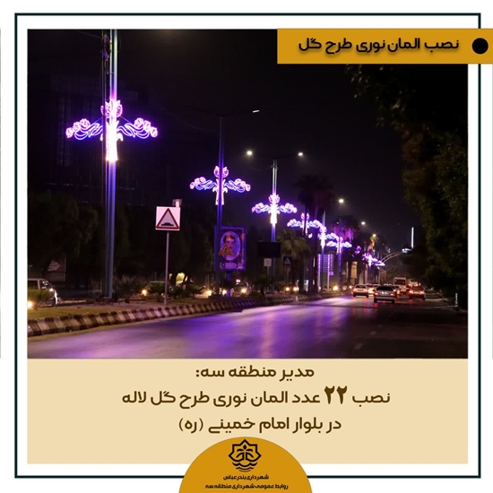 مدیر منطقه سه شهرداری بندرعباس از نصب 22 عدد المان نوری طرح گل لاله در بلوار امام خمینی (ره) خبر داد.