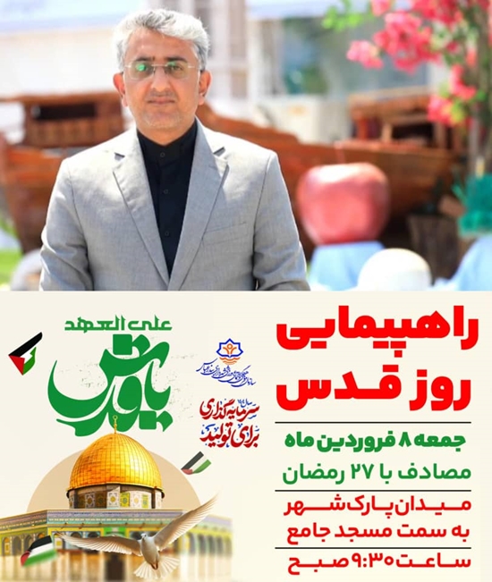 به گزارش مدیریت ارتباطات و امور بینالملل شهرداری بندرعباس، شهردار بندرعباس از عموم مردم این شهر دعوت کرد تا در راهپیمایی جهانی روز قدس، که در آخرین جمعه ماه مبارک رمضان برگزار میشود، حضوری گسترده و پرشور داشته باشند.