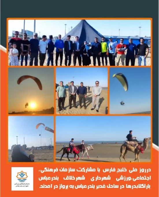 همزمان با روز ملی خلیج فارس و با مشارکت سازمان فرهنگی ورزشی شهرداری بندرعباس پرواز پاراگلایدرها در ساحل غدیر بندرعباس برگزار شد.