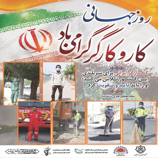 اینجانب ضمن تقدیر و تشکر از همه کارگران متعهد، سختکوش و پرتلاش استان و با ارج نهادن به زحمات بازوان پرتلاش عرصه اقتصادی، فرا رسیدن روز کار و کارگر را به جامعه بزرگ کارگری شهربندرعباس تبریک و تهنیت عرض نموده و امیدوارم در سالی که از سوی رهبر فرزانه انقلاب با نام سال "تولید، دانش‌بنیان و اشتغال‌آفرین" نامگذاری شده است، شاهد پیشرفت و توسعه روز افزون ایران اسلامی باشیم.