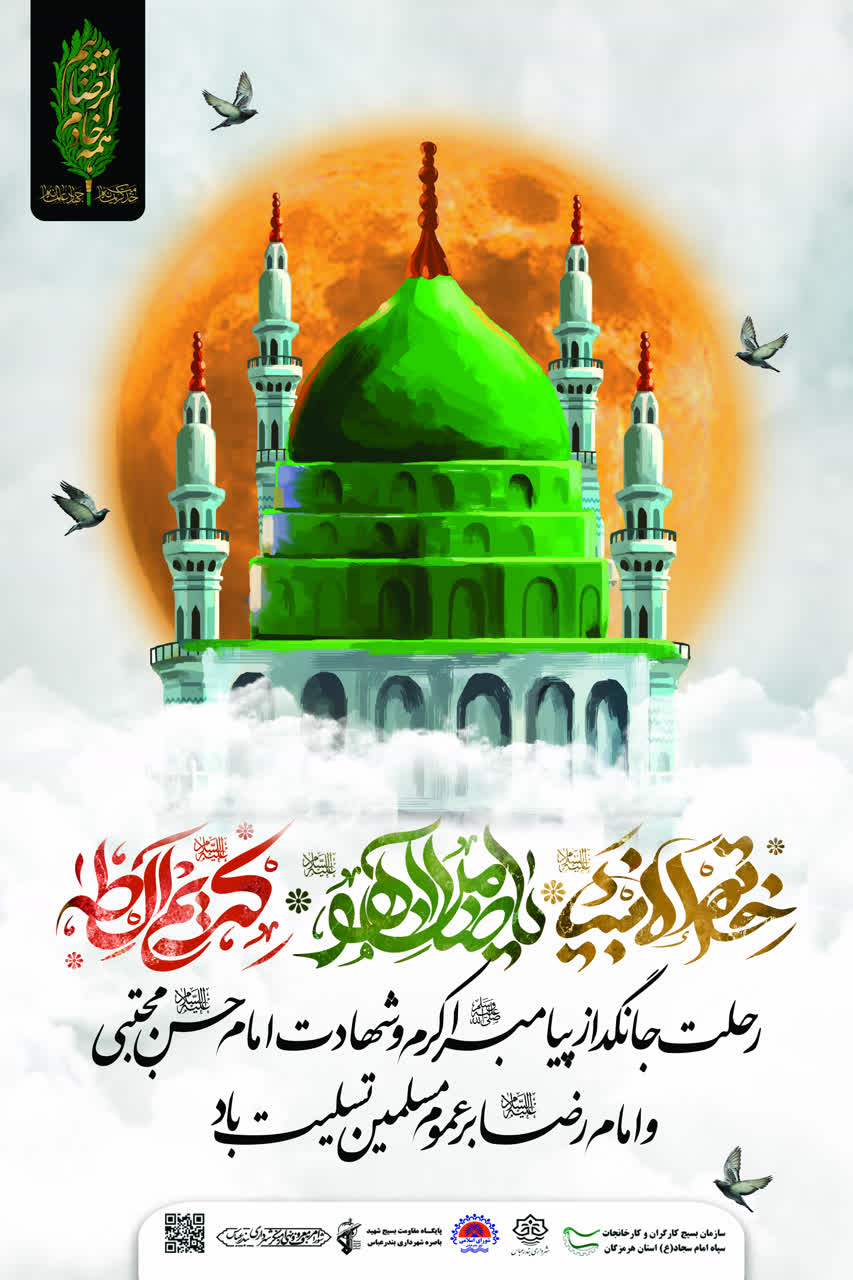 اينجانب فرارسیدن ایام سالگرد وفات حضرت محمد مصطفی(ص) و شهادت مظلومانه سبط اکبر پیامبر، امام حسن مجتبی(ع) و شهادت غریبانه هشتمین پیشوای معصوم، حضرت امام علی بن موسی الرضا(ع)، بر تمامی مسلمان تسلیت ميگويم.