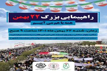 انقلاب اسلامی ايران تبلور و نتيجه همبستگی و همدلی تمامی اقوام و احزاب و سليقه ها و گرايشهاست موفقيت های بزرگ ايران اسلامی در ٤٤ سال گذشته مرهون و نتيجه صبر استقامت و بزرگواری ملت ايران بوده و همواره در هر زمان كه ملت اراده پولادين خويش را نشان داده استكبار جهانی در تمامی دوران ها عقب نشينی كرده و ترس نابودی وجودش را فرا گرفته أست مردم عزیز ما همیشه با هوشمندی و موقعیت شناسی خوبی که دارند زمانی که دشمن برهنه و بی نقاب تر در صحنه حضور دارد و زبان به تهدید و عربده کشی باز می کند، با صفوف فشرده وحدت خود را به نمایش می گذارند.در ۲۲ بهمن امسال، مردم ایران در برابر دسيسه ها فتنه ها و فريبكاری های دشمن با حضوری گسترده تر و عزمی مصمم تربه دنیا نشان می دهند ملت ایران از پیام های تهدید آمیز هراسی ندارند و نمی توانند با اراده ملت به این سادگی بازی کنند.