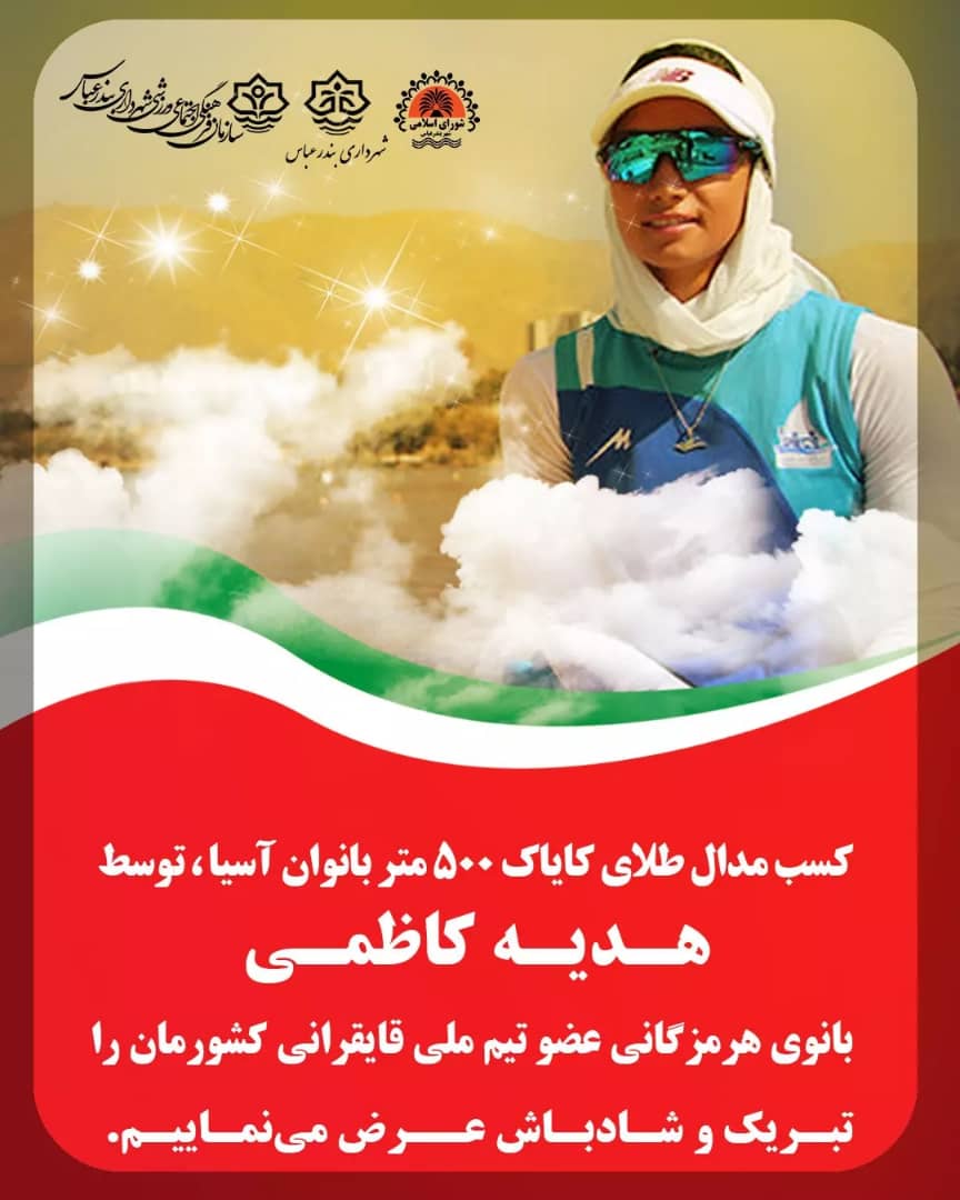 پیام تبریک رئیس سازمان فرهنگی اجتماعی ورزشی شهرداری بندرعباس به هدیه کاظمی و اسلام جاهدی قهرمانان قایقرانی در رقابتهای آسیایی و پاراکانو