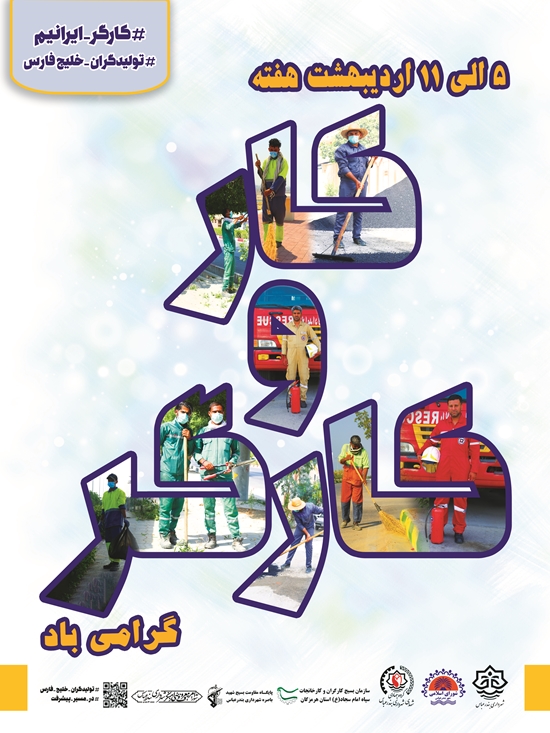 اینجانب یازده اردیبهشت ، روز کارگر را به تمامی کارگران متعهد ، زحمتکش و کوشای ایران اسلامی ، بویژه به سبزبانان و پاکبانان و همه کارگران خدوم مجموعه مدیریت شهری شهرداری بندرعباس تبریک و تهنیت عرض نموده ، زحمات و تلاشهای شبانه روزی این عزیزان را ارج نهاده ، توفيقات روز افزون همراه با سلامتی برای این عزیزان را از خداوند منان مسألت می نمايم .
