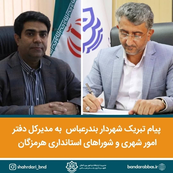 پیام تبریک شهردار بندرعباس به مدیر کل دفتر امور شهری و شوراهای استانداری هرمزگان