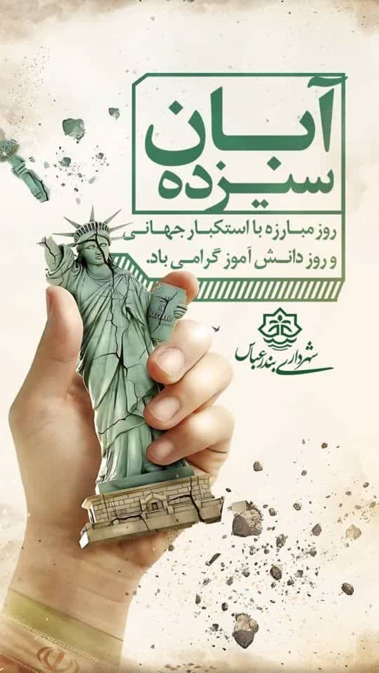 شهردار بندر عباس به مناسبت فرارسیدن روز ۱۳ آبان، روز ملی مبارزه با استکبار جهانی و روز دانش آموز، در پیامی این روز را تبریک گفت.