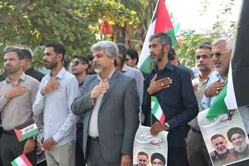 به گزارش مدیریت ارتباطات و امور بین الملل شهرداری بندر عباس با حضور شهردار، رییس شورای اسلامی شهر، اعضای شورا و جمعی از مدیران، مسئولین و پرسنل شهرداری بندرعباس اجتماع اعتراضی ضد صهیونیستی در محکومیت ترور ناجوانمردانه دبیر کل حزب الله لبنان و سردار نیلفروشان برگزار شد.