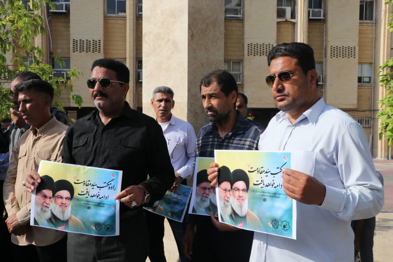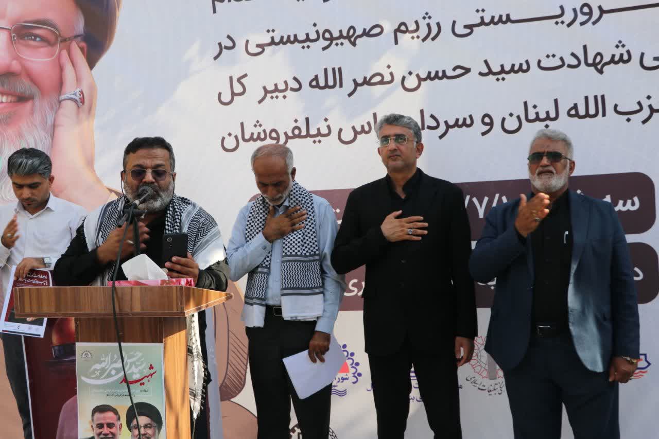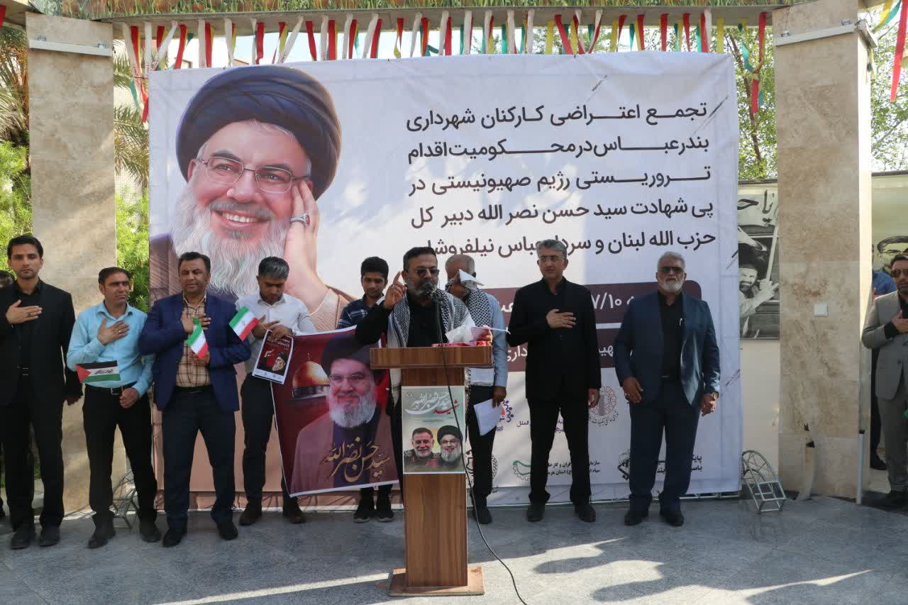 کارکنان شهرداری بندرعباس در پی شهادت سید حسن نصرالله اجتماع ضد صهیونیستی برگزار کردند.