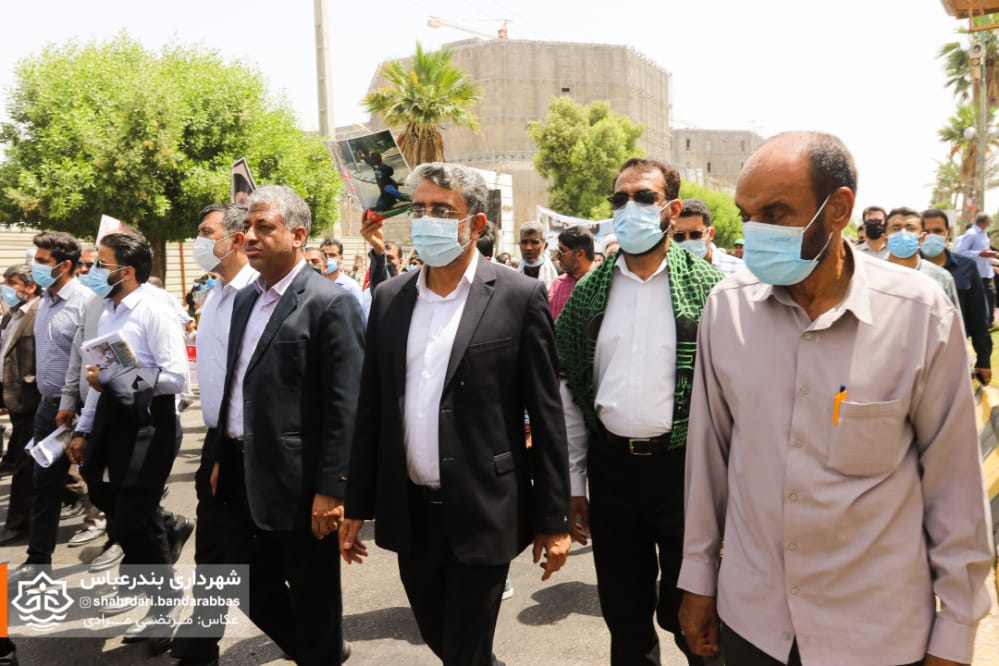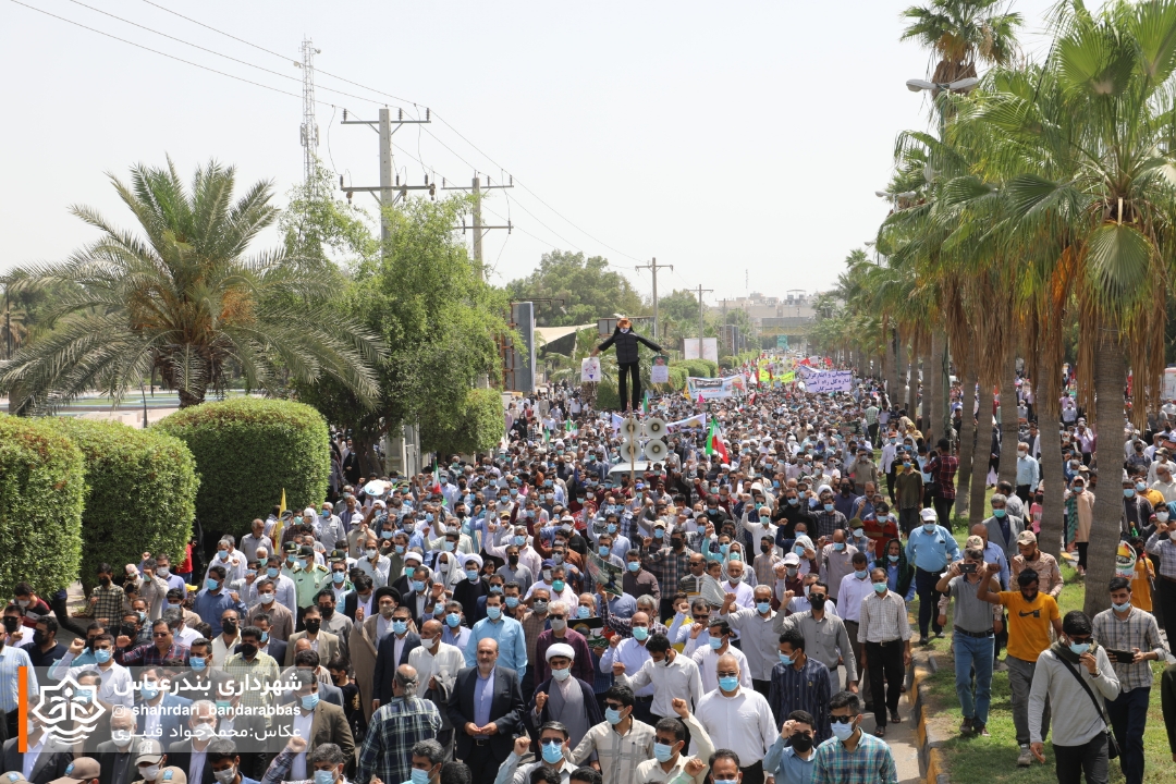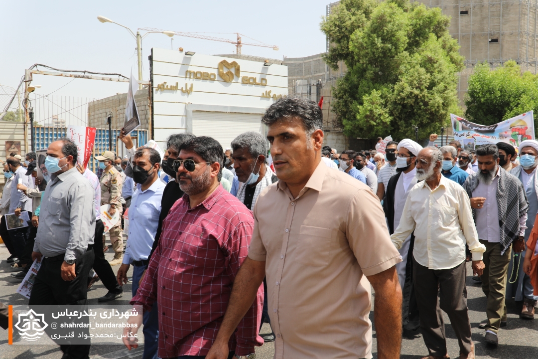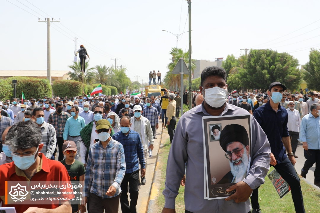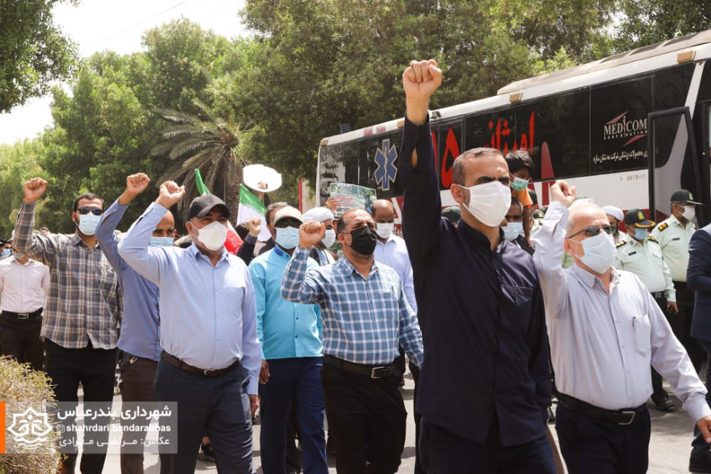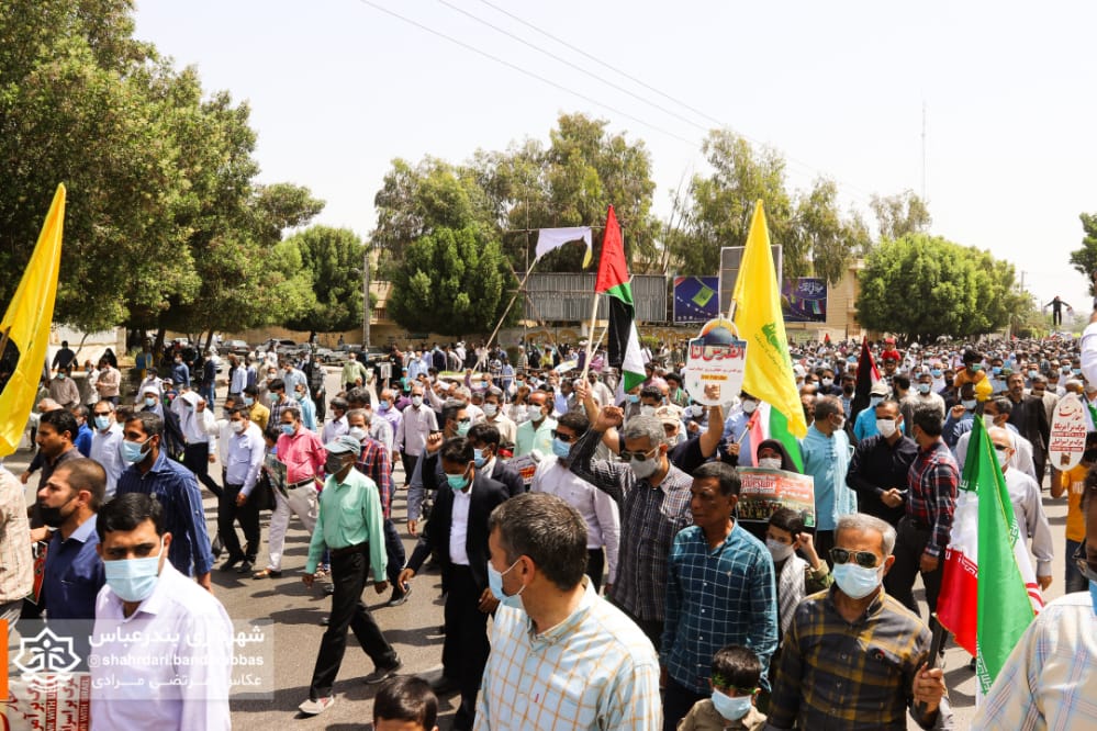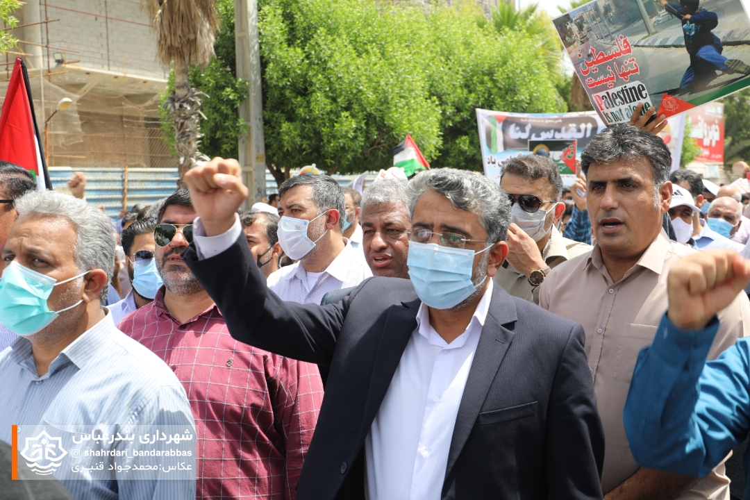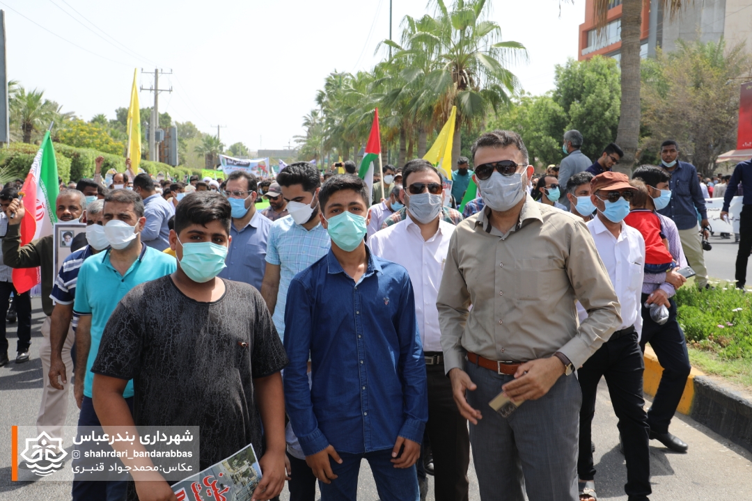 به گزارش مدیریت ارتباطات و امور بین‌الملل شهرداری بندرعباس، در آخرین جمعه ماه مبارک رمضان همزمان با روز جهانی قدس اقشار و آحاد مختلف مردم در لبیک به دعوت مقام معظم رهبری و همبستگی با مردم مظلوم فلسطین در راهپیمایی این روز حضوری پرشکوه داشتند.